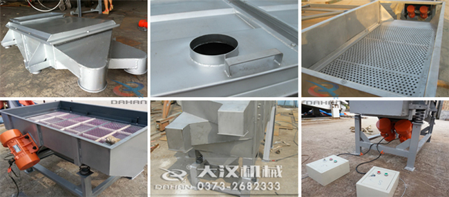 多層直線振動(dòng)篩粉機(jī)主要由篩箱、篩框、篩網(wǎng)、振動(dòng)電機(jī)、電機(jī)臺(tái)座、減振彈簧、支架等組成。